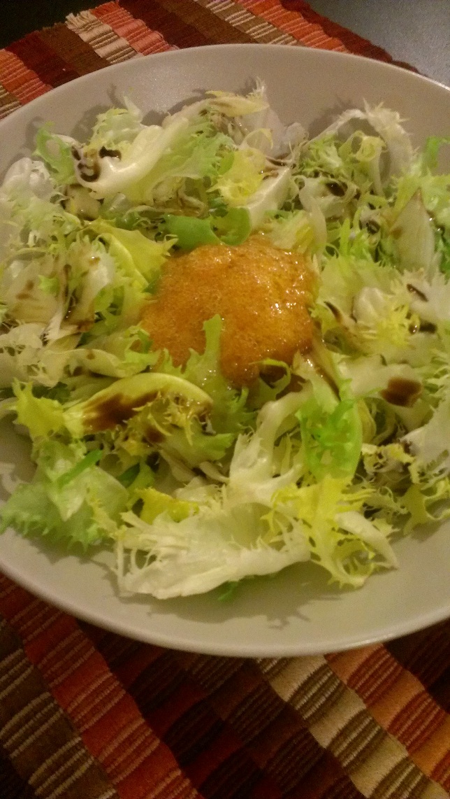 - Unas hojitas de escarola, para decorar (si es que os sobraron de la ensalada ibérica y de la «depur»).