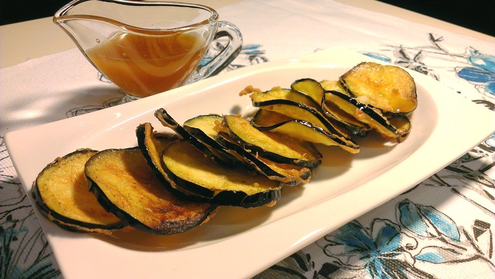 Paralelamente a esto, vamos a preparar el resto del plato. Pelaremos y cortaremos la berenjena en bastones como de 1 cm de grosor (como si fueran para patatas fritas). Los salamos muy ligeramente y reservamos.