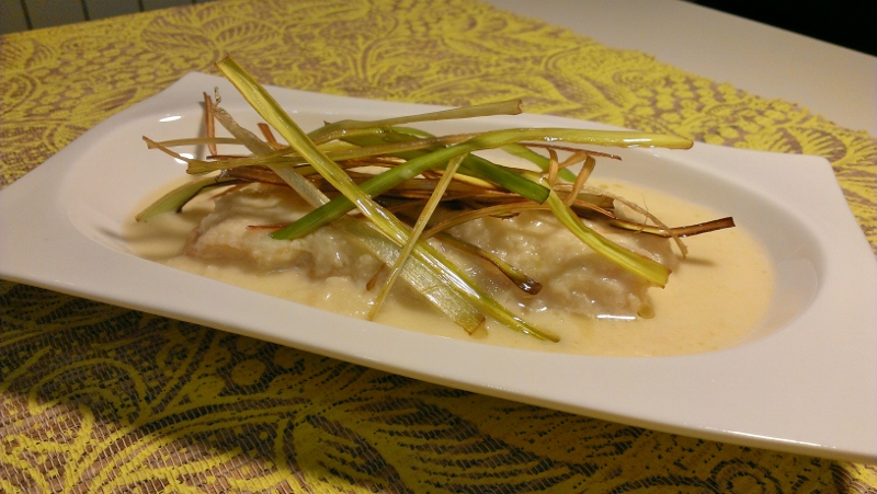 Para preparar nuestras empanadillas, lo primero que haremos será cortar la cebolleta en juliana, en tiras de unos 3 milímetros de ancho por 3 cm de largo. Cuando la tengamos, cogeremos una sartén medianita y la pondremos al fuego, al 50% de potencia. Echaremos en ella la mantequilla y la cucharada de aceite (el aceite nos servirá para evitar que la mantequilla se queme, pues la mantequilla se quema a una temperatura mucho más baja que el aceite. Recordad este truco por si lo necesitáis para vuestras creaciones…). Cuando la mantequilla se haya fundido, añadiremos la cebolleta y la rehogaremos a esta potencia 6 minutos, removiendo a menudo.