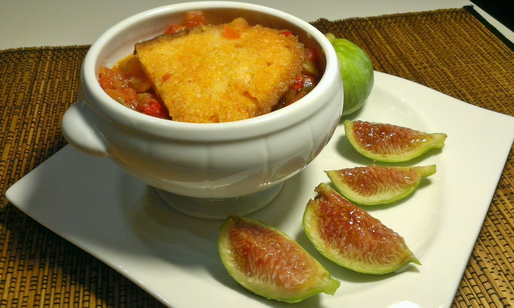 Como os adelantaba en mi última receta (bacalao al estilo sidrería), he tenido la suerte de traerme de las vacaciones un montón de tesoros de la huerta de Badajoz. Pero no sólo eso, sino que además me he traído en la “mochila” recetas típicas de aquella zona que son totalmente nuevas para mí. Hoy comparto con vosotros una de ellas, la sopa de tomate con guarnición de higos, que me enseñó de viva voz la madre de mi gran amiga Sheyla.